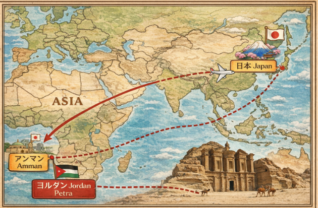 ① 日本 → ヨルダン(首都アンマン)へ