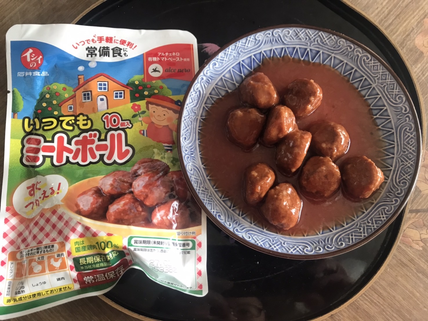 よこっちょのは、レトルトのお豆さんとミートボール^^