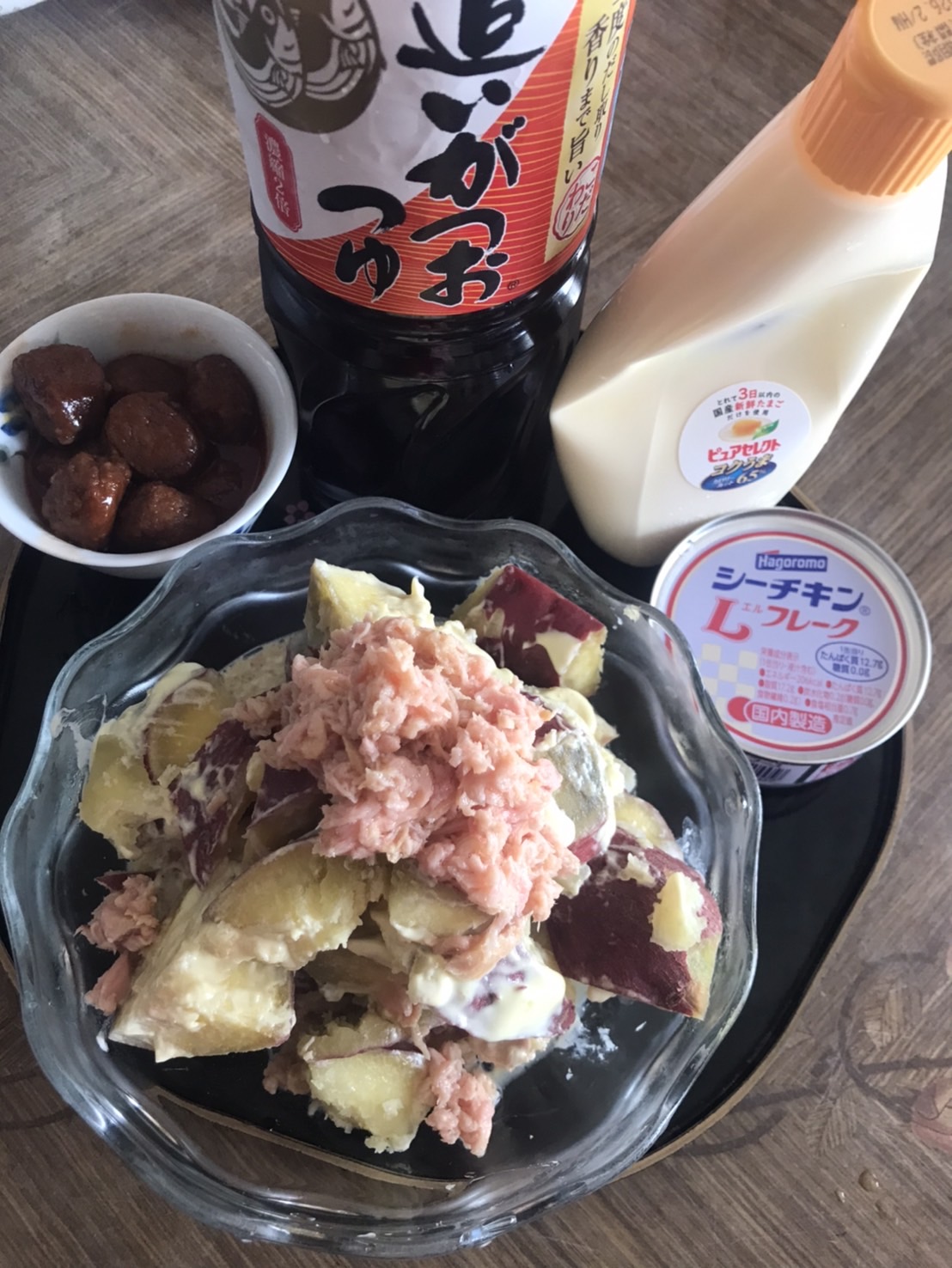 さつまいもはツナ缶とマヨ、めんつゆでサラダにしました^^