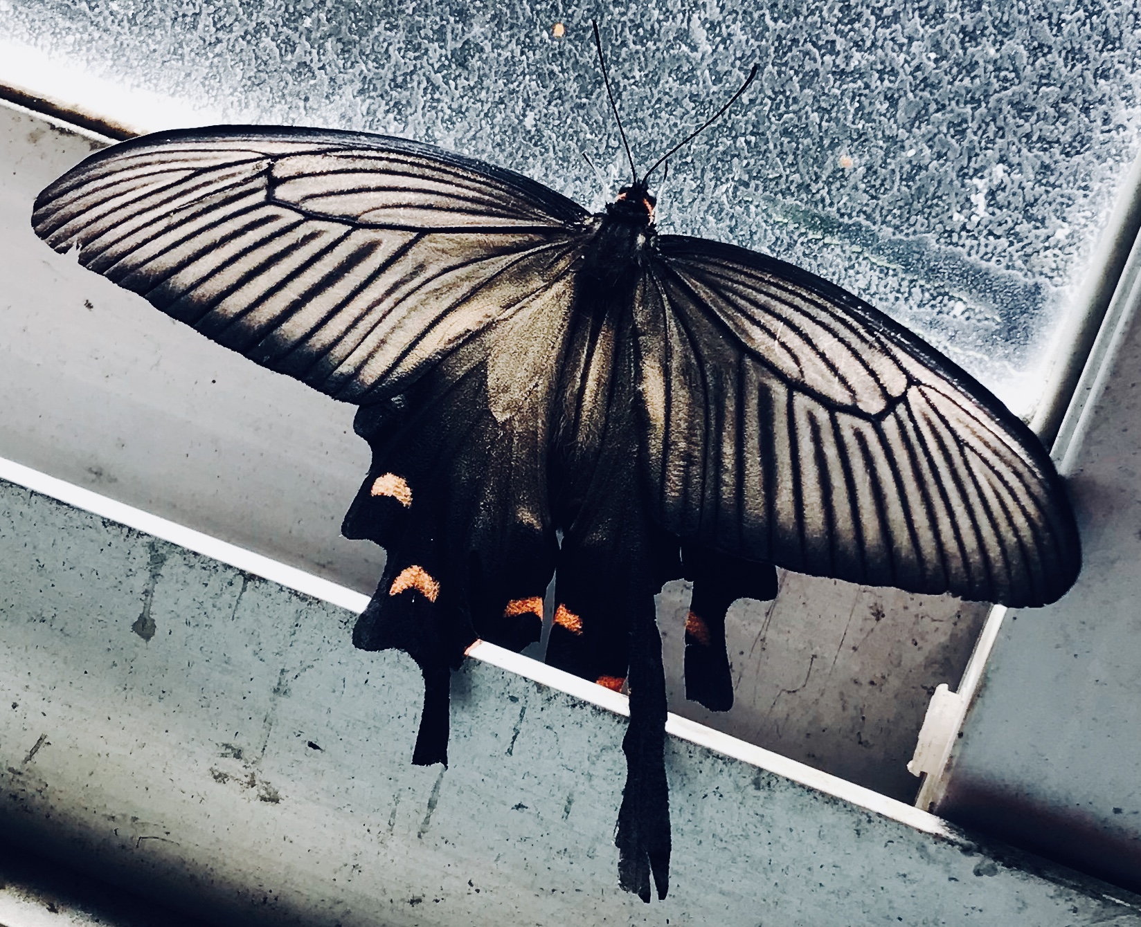 土間に現れたかなり大きなちょうちょ♪