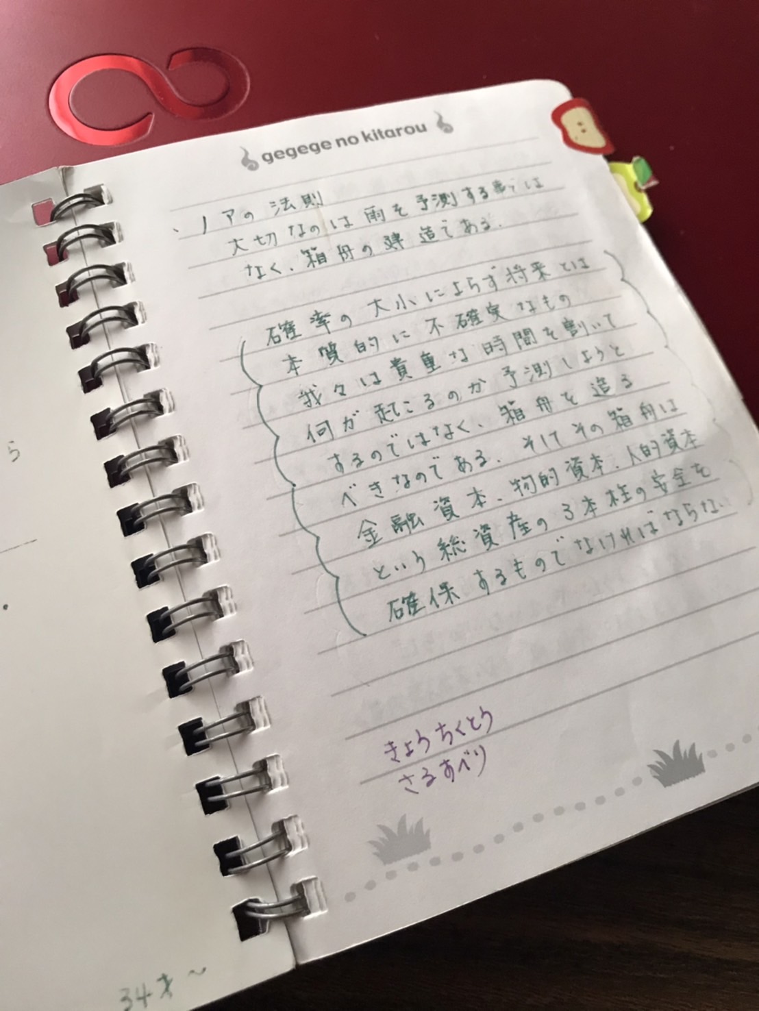 34才から書いてある鬼太郎ノートの1ページ目♪