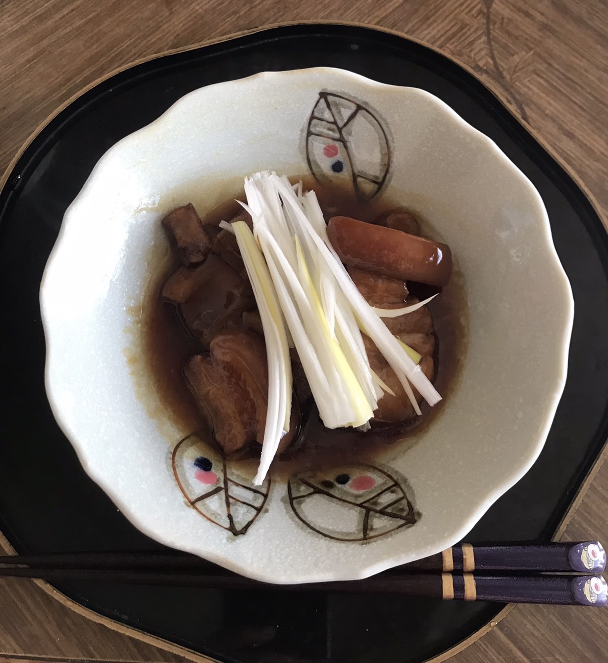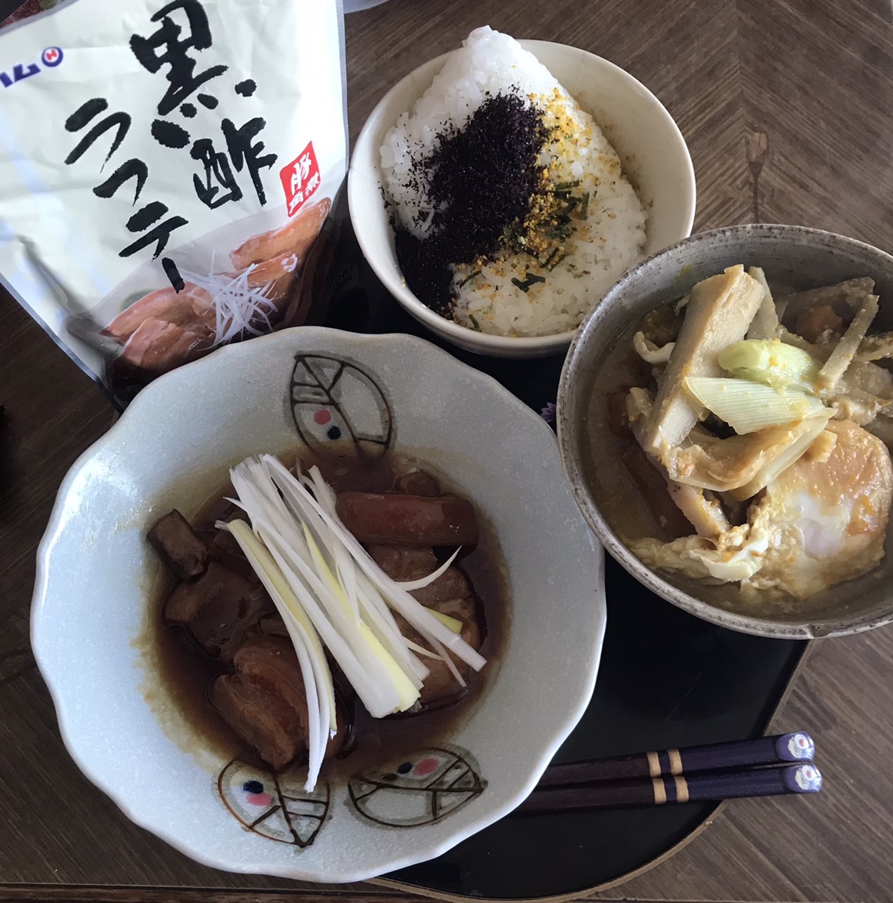 今日の朝ご飯兼昼ご飯は黒酢のラフテーです^^