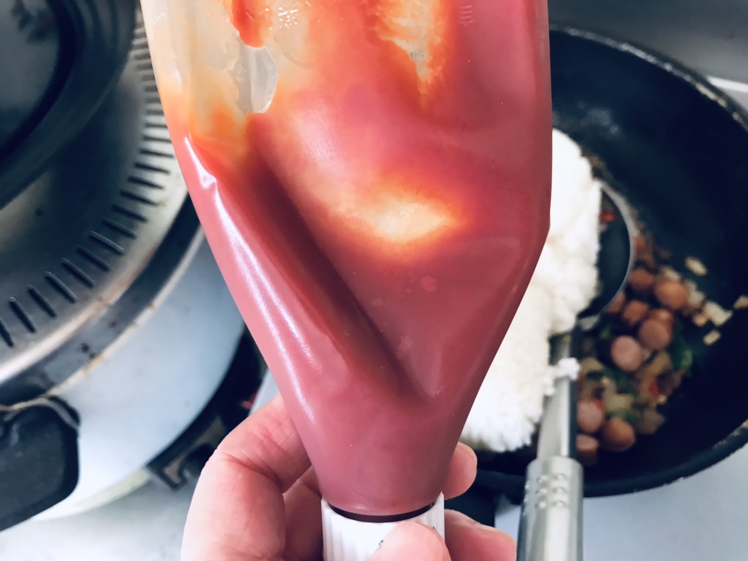 はい、茶番はさて置き。ケチャップをただ単に入れただけです 笑
