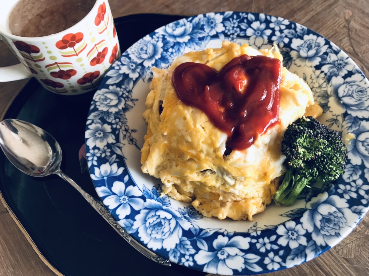 真ん中の赤いいびつなケチャップは,ハートマークよ♪