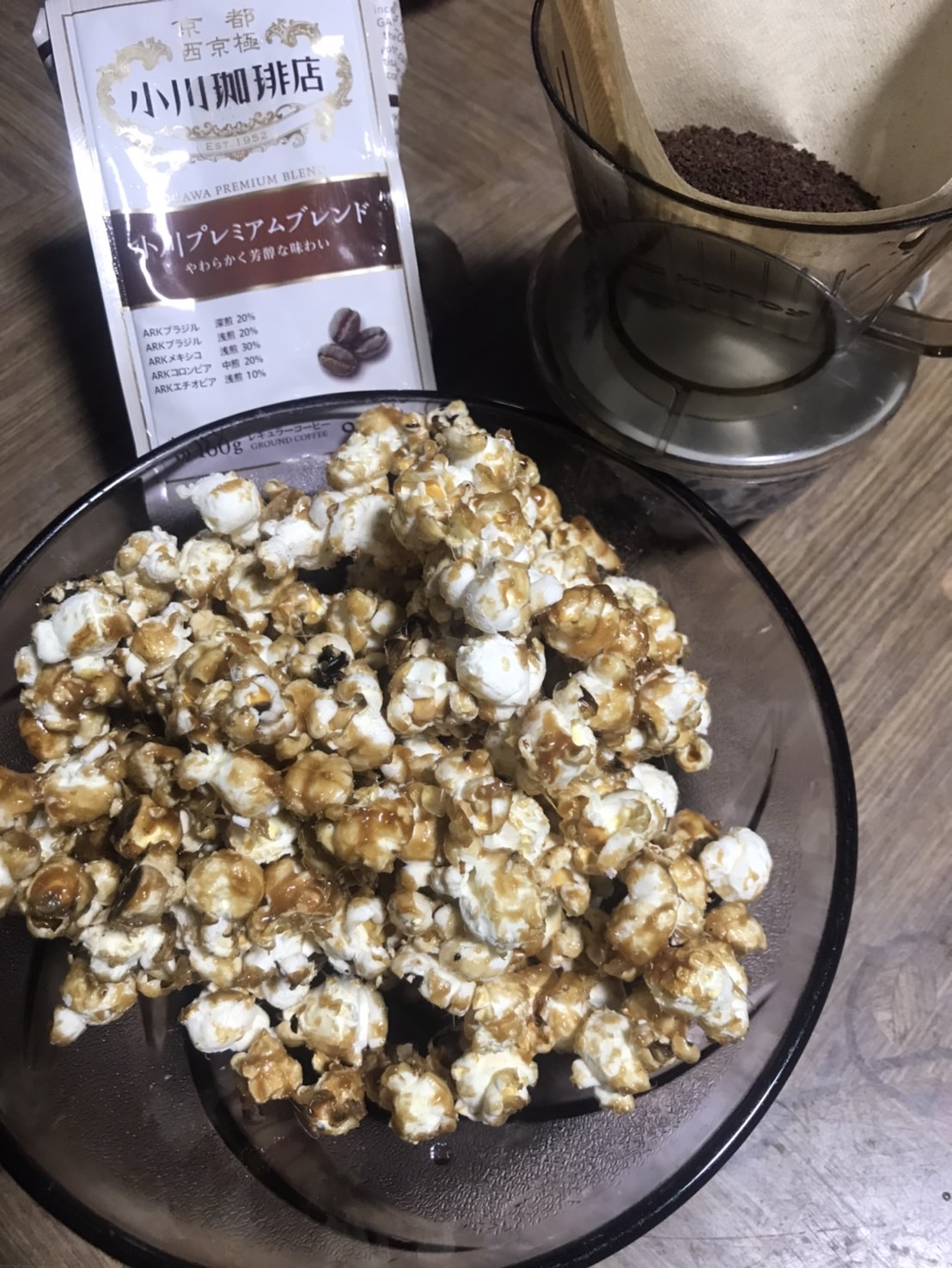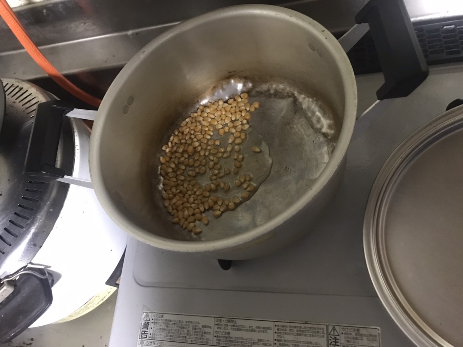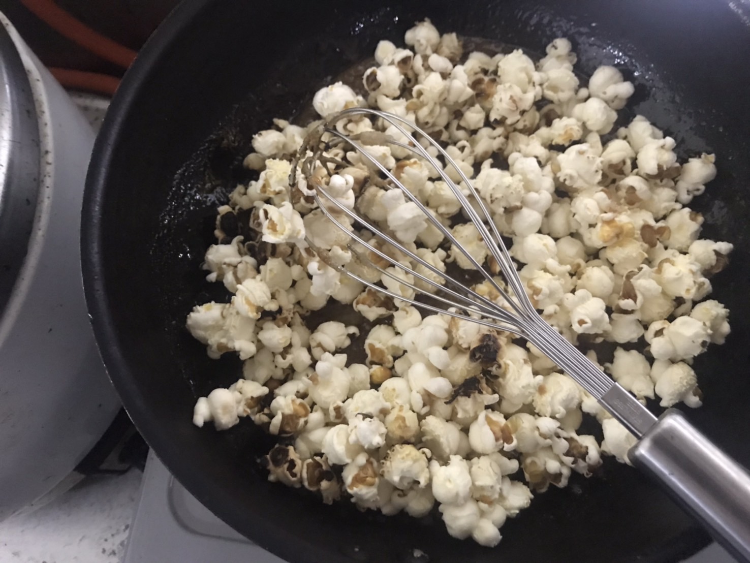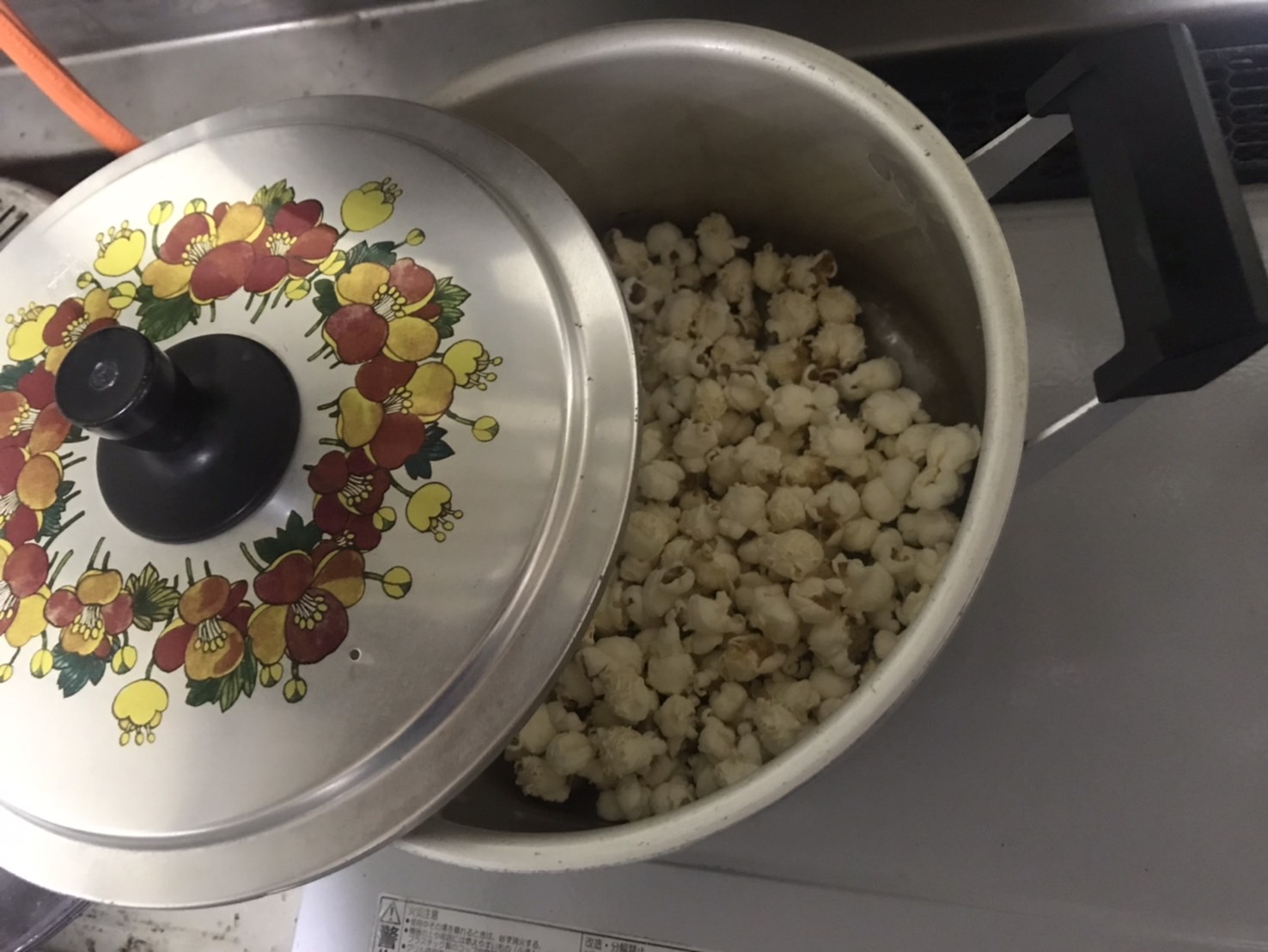 こんがり煮立ったところで、ポップコーンを入れていくっ୧(๑›◡‹ ๑)୨