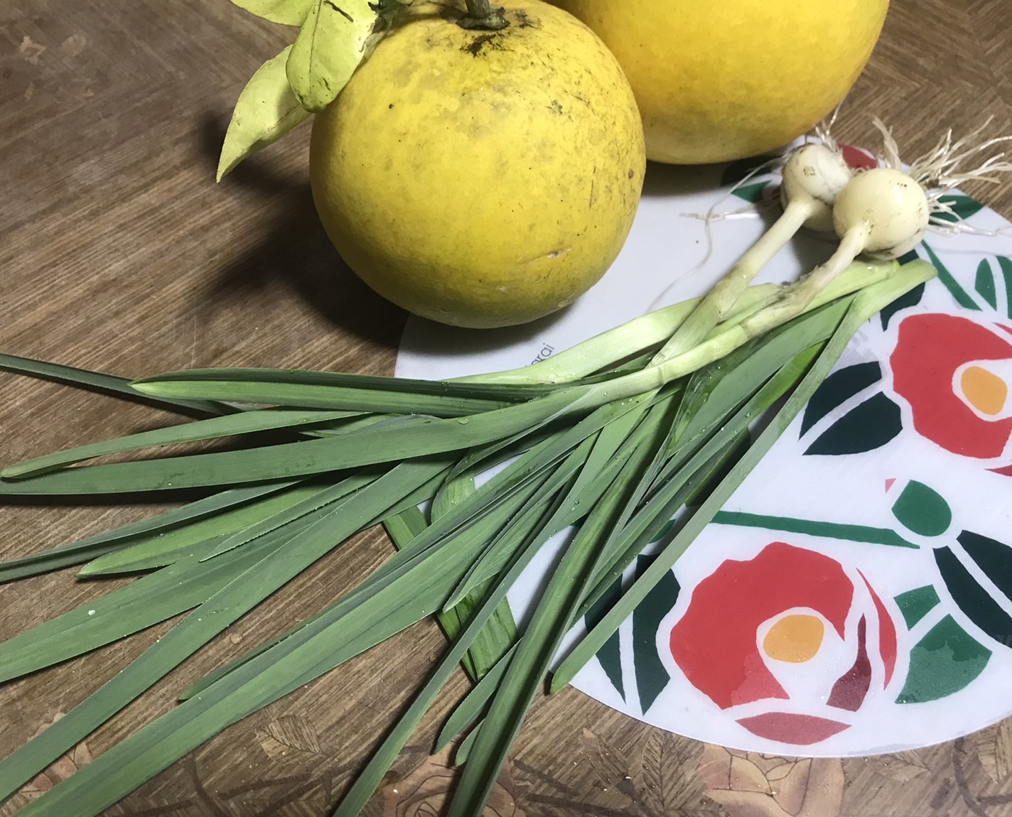美味しいミカンと葉ニンニクが、何もしていないのに立派に育ってて^^