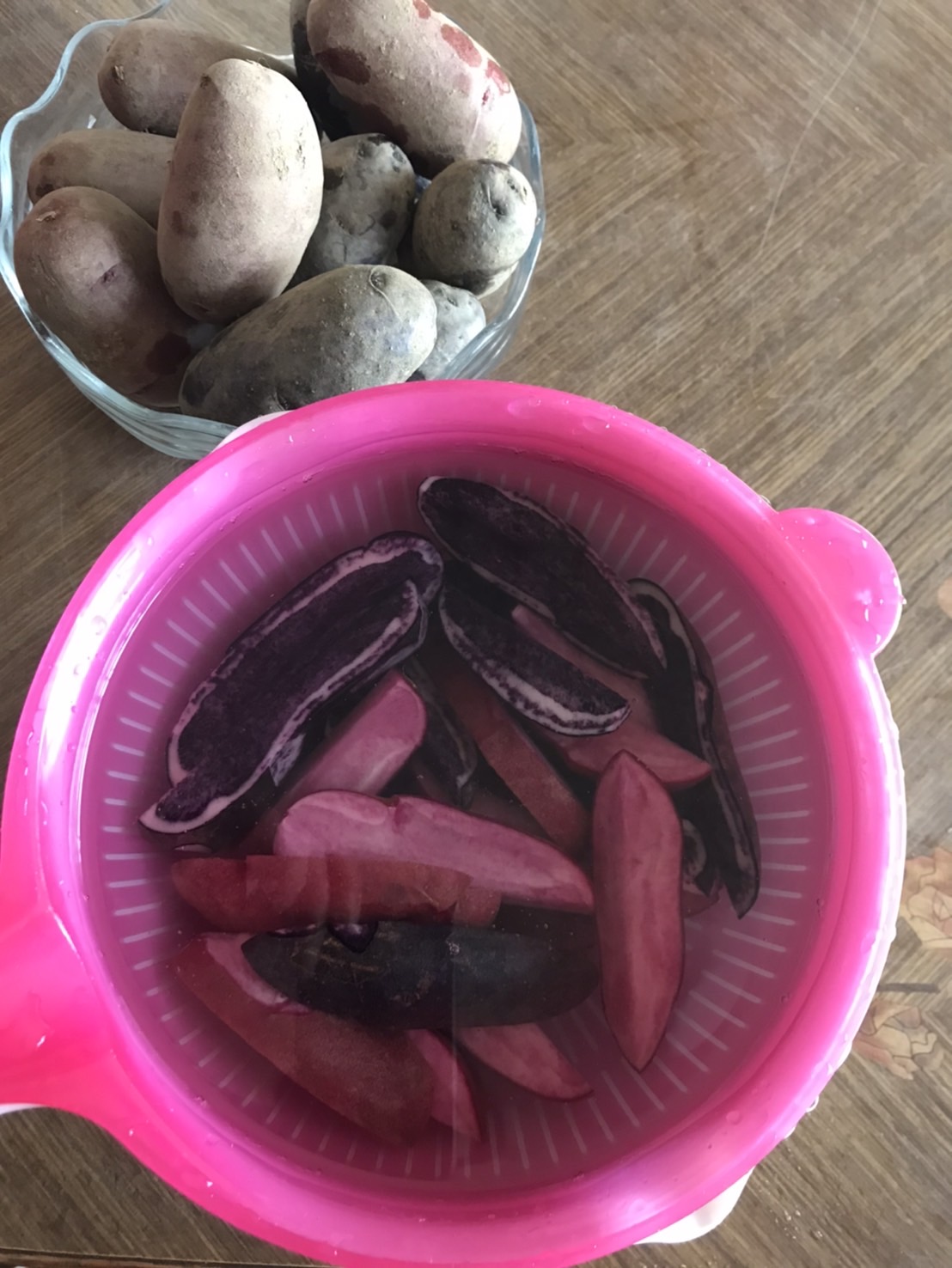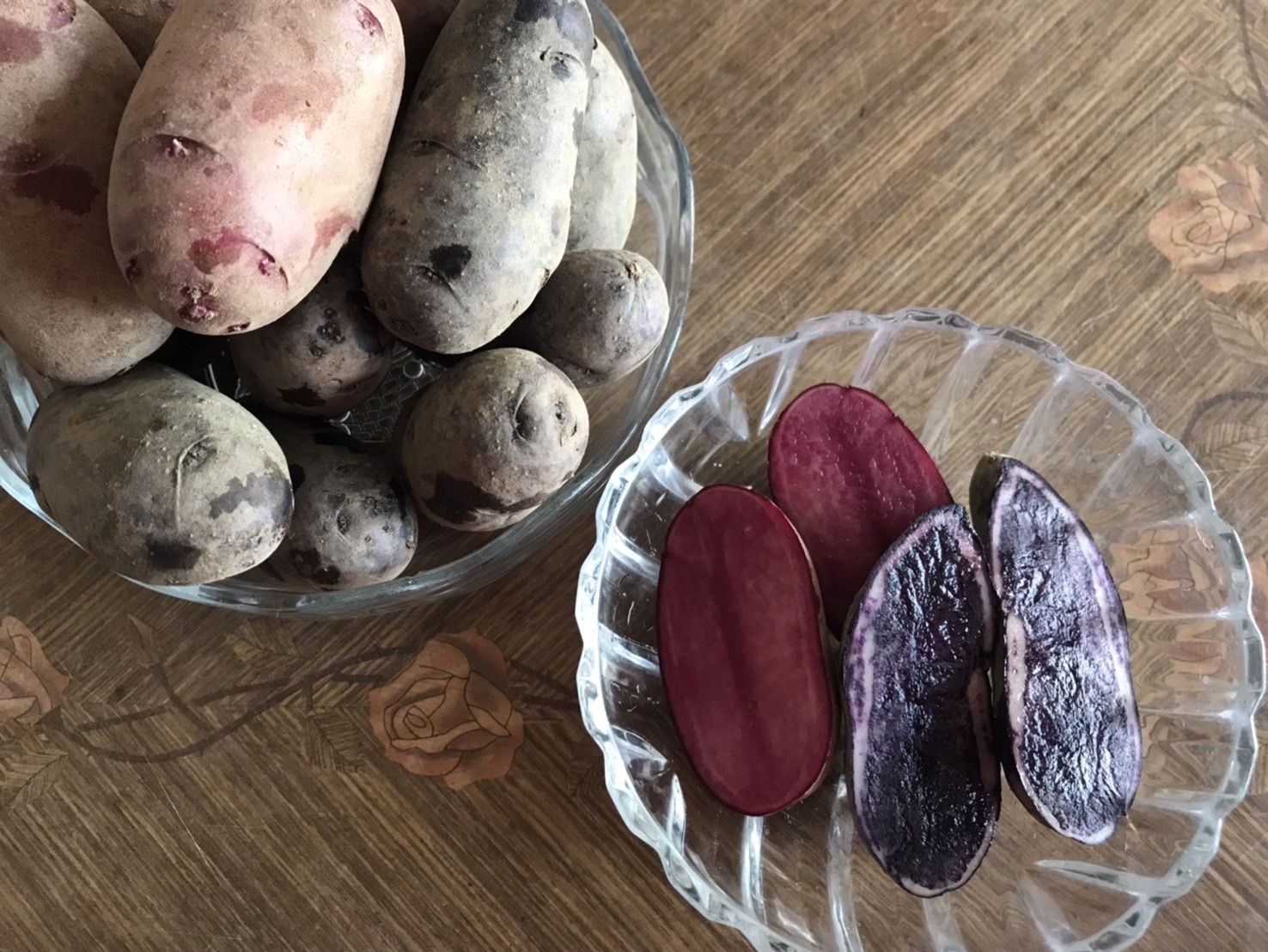カラフルな赤と紫の珍しいじゃがいもが届きました^^