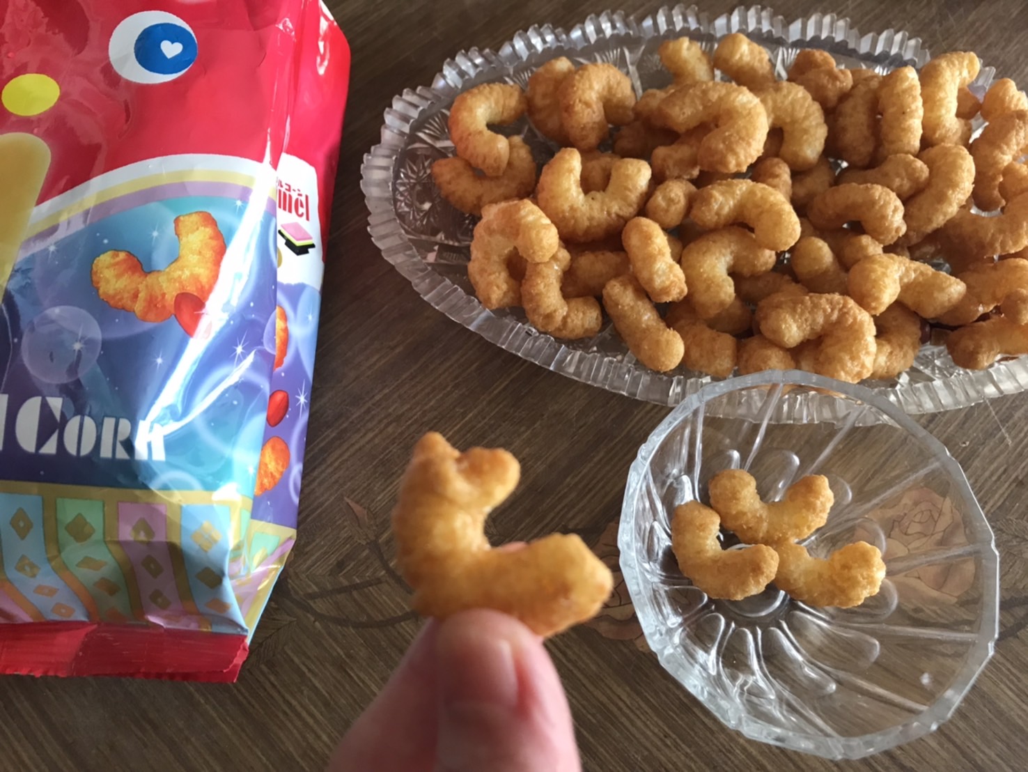 このキャラメルコーンはエビフライに見えるし(≧∇≦)