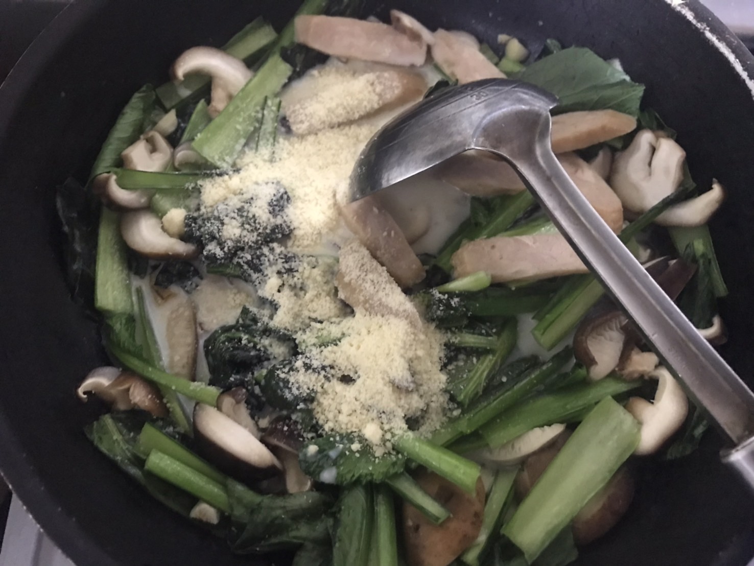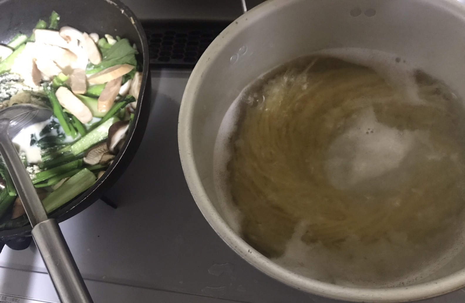 なので、小松菜も椎茸もパスタも全部盛りだくさんで用意している次第(≧∇≦)