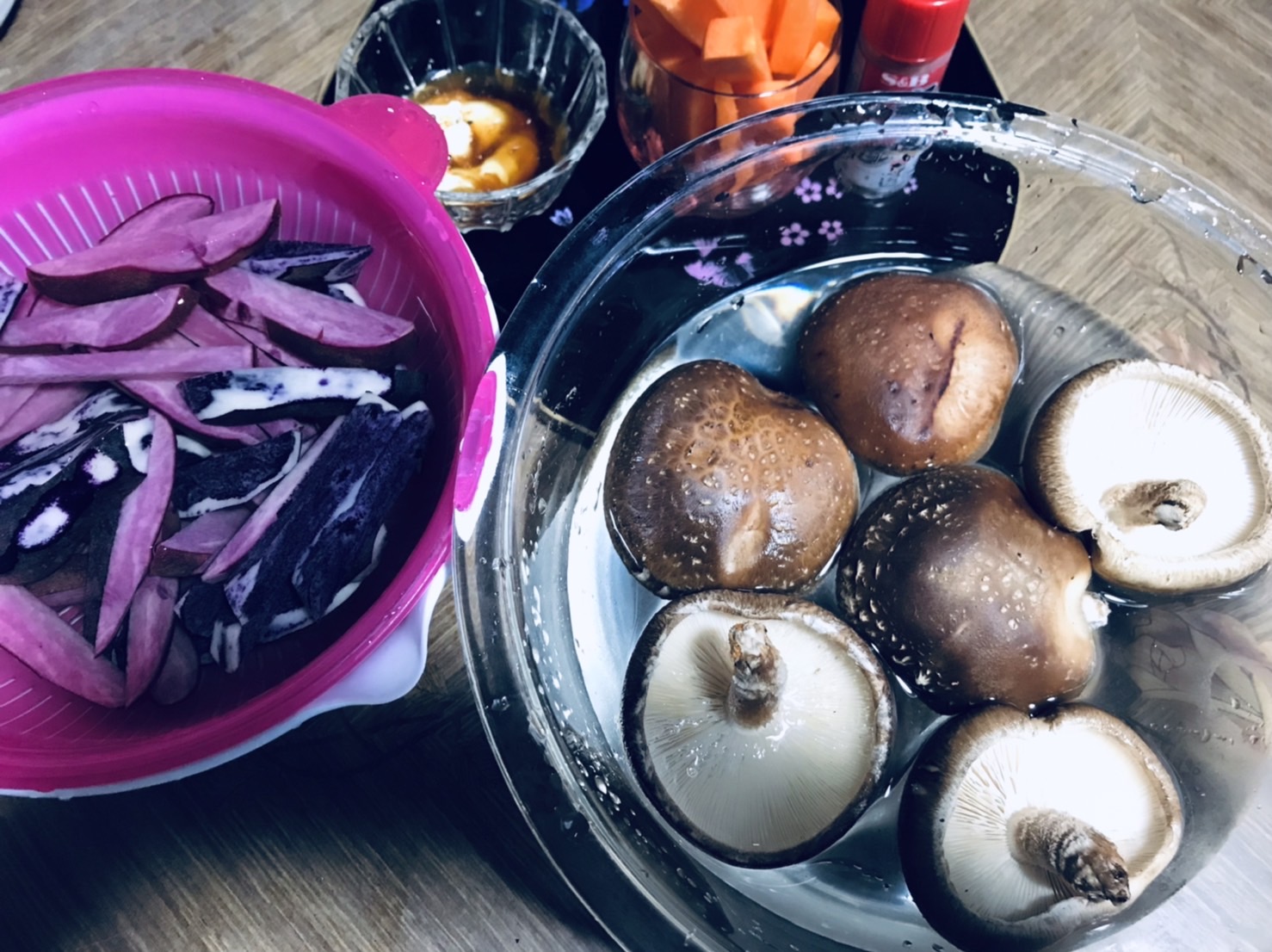 しいたけの隣のは噂のカラフルじゃがいも^^