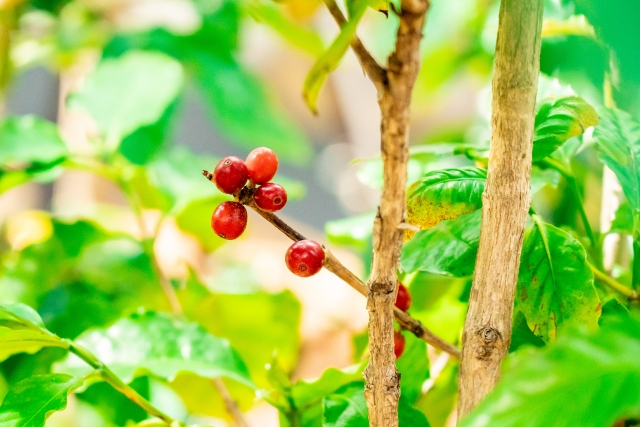インドネシアの、このモチの木の実に似たような実は「コーヒーチェリーの実」